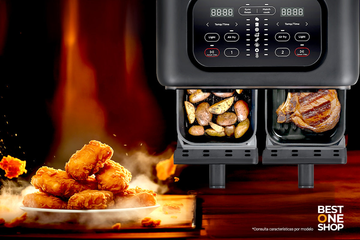 Cocina platos crujientes con menos grasa y más sabor. Tecnología práctica, resultados perfectos y la versatilidad que tu familia necesita.